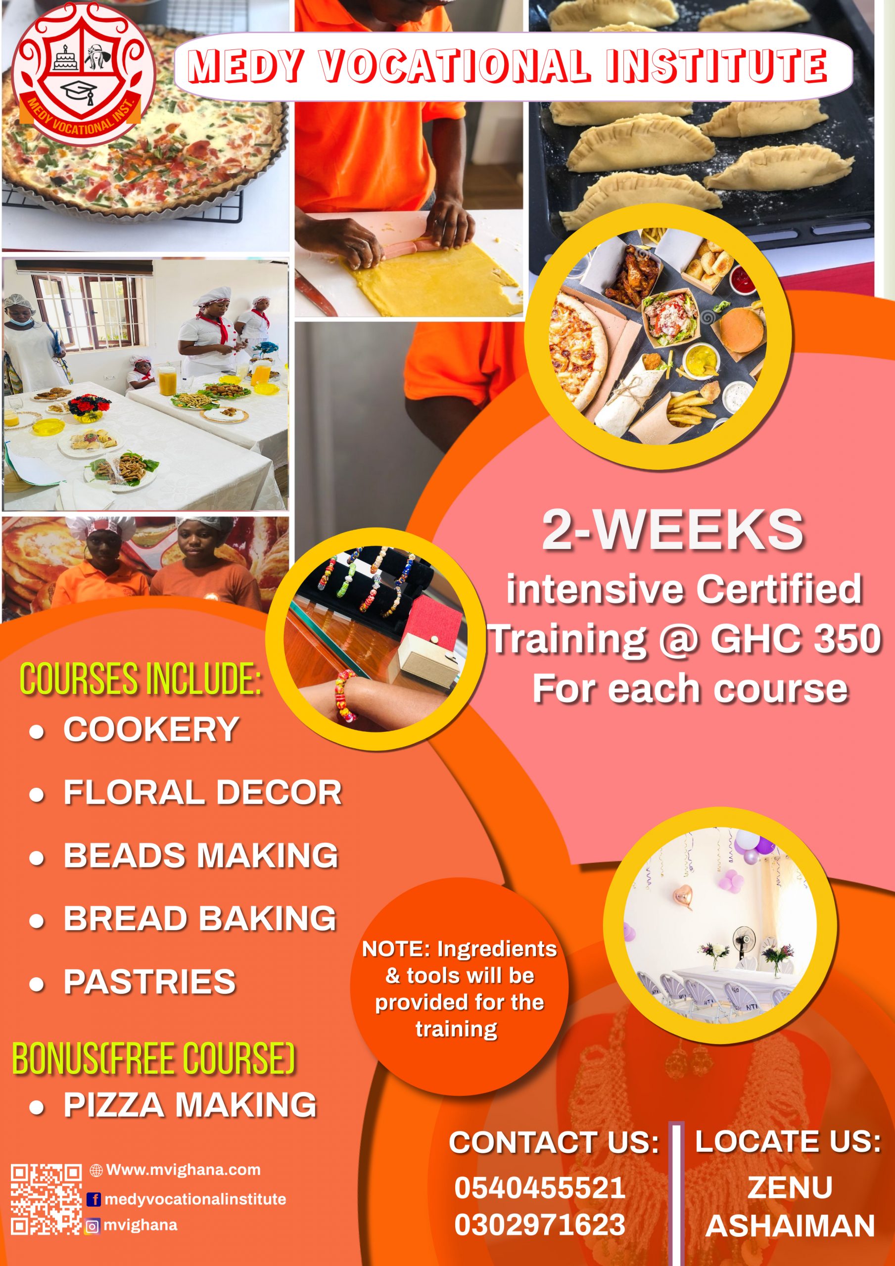 This six (6) months certificate programme is aimed at equipping students not only with the skills and art of cooking but the business skills necessary to succeed in the industry. The various programmes under the School of Culinary Arts & Hospitality Management are listed below;
